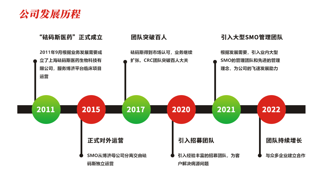 上海砝碼斯醫(yī)藥生物科技有限公司,簡(jiǎn)稱“砝碼斯”,成立于2011年,座落于上海。公司發(fā)展12年,專注于創(chuàng)新藥物(械)研發(fā)提供臨床研究中心管理服務(wù)(SMO),以創(chuàng)建中國SMO國際品牌為愿景,致力于推進(jìn)人類公眾健康為使命。截止2022年10月,砝碼斯在中國50多座城市擁有一支超過500人的穩(wěn)定專業(yè)臨床研究團(tuán)隊(duì),服務(wù)于300多家臨床試驗(yàn)機(jī)構(gòu),承接500多個(gè)臨床試驗(yàn)項(xiàng)目,并成功助力企業(yè)完成20多項(xiàng)目上市注冊(cè)。在腫瘤、內(nèi)分泌、呼吸系統(tǒng)、風(fēng)濕免疫、消化肝病、婦兒等領(lǐng)域具有豐富的臨床試驗(yàn)經(jīng)驗(yàn)。砝碼斯人篤信“質(zhì)量就是生命”,以服務(wù)為宗旨,以質(zhì)量促發(fā)展,致力于搭建生物醫(yī)藥研發(fā)服務(wù)的高端平臺(tái),為大眾健康保駕護(hù)航!